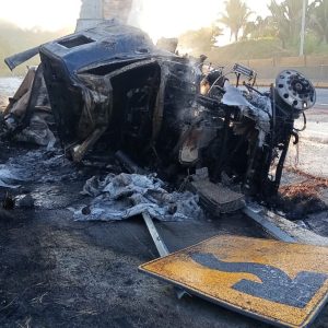 En respuesta a este hecho, agentes pertenecientes al Heroíco Cuerpo de Bomberos Estatal acudieron al lugar, donde se observó un tráiler que transportaba cal, volcado sobre su costado y en total y libre combustión, a la brevedad, se coordinaron acciones para cerrar la carretera, protegiendo de esta manera la integridad de las y los usuarios.