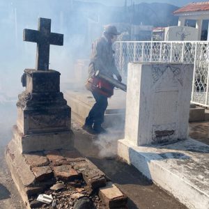 De igual manera, personal del área de Vectores y Zoonosis realizó labores de nebulización en distintos cementerios, con el propósito de disminuir la densidad del mosquito y proteger la salud de la población.