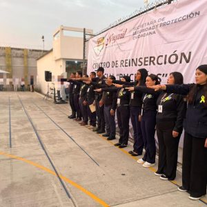 La Secretaría de Seguridad y Protección Ciudadana, a través de la Dirección General de Prevención y Reinserción Social, llevó a cabo Honores a la Bandera en los Centros de Reinserción Social “Venustiano Carranza”, “Bucerías” y femenil “La Esperanza”, con el propósito de fortalecer los valores cívicos y el sentido de identidad nacional.