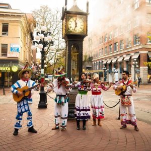 Entre calles llenas de historia, como el icónico Gastown Steam Clock, se presentaron danzas folclóricas, música regional y coloridos trajes típicos que mostraron la riqueza cultural de nuestro estado.