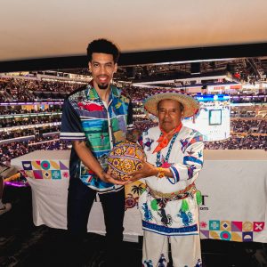 Un momento especial fue la entrega del balón de juego por un representante de la comunidad Wixárika, además de obsequiar a la leyenda Danny Green un balón intervenido con arte huichol, símbolo de la unión entre deporte y cultura.