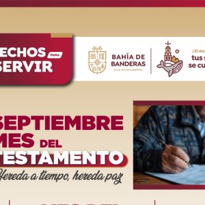 El H. XII Ayuntamiento de Bahía de Banderas, el cual encabeza el presidente municipal, Lic. Héctor Santana, ha lanzado la campaña «Septiembre, Mes del Testamento», ofreciendo descuentos significativos para facilitar a los ciudadanos la elaboración de este documento.
